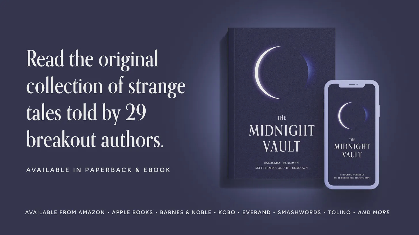 In a dark basement, a dying woman makes a final plea. No gods have ever answered her prayers. No angels have appeared to save her. In the last moments of her despair, she summons the only creature willing to help. What happens next is yours to witness … when the Midnight Vault opens…